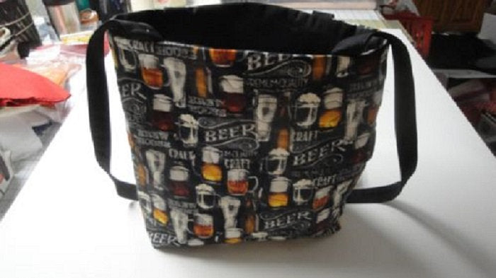 Beer Connoisseur Tote Bag-Black Background-Machine Quilted-Hand Made