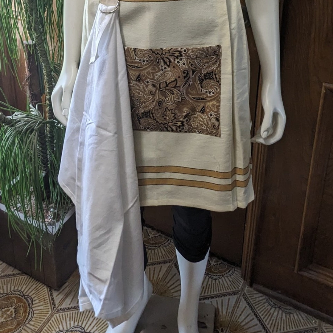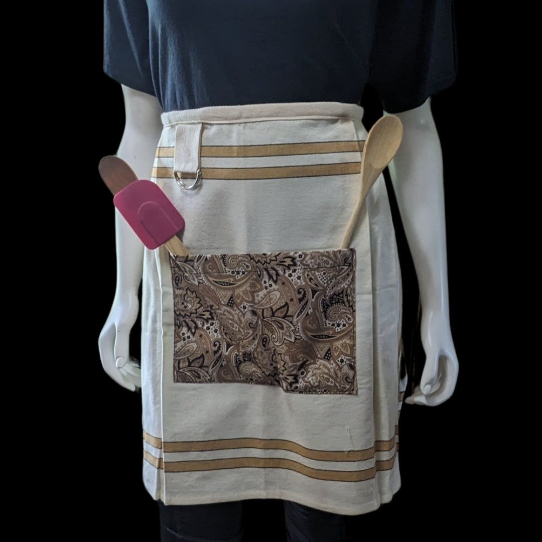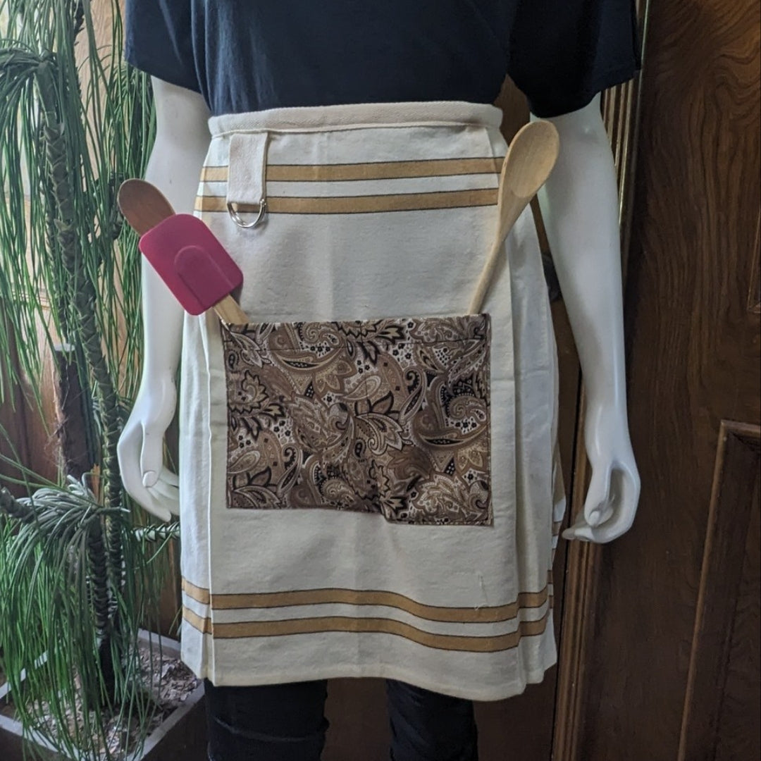 Add timeless charm to your kitchen or crafting routine with this beautifully handmade half apron in soft tan, finished with elegant paisley-print pockets. Lightweight and durable, it’s a perfect blend of classic style and modern functionality for cooking, gardening, or creative projects.