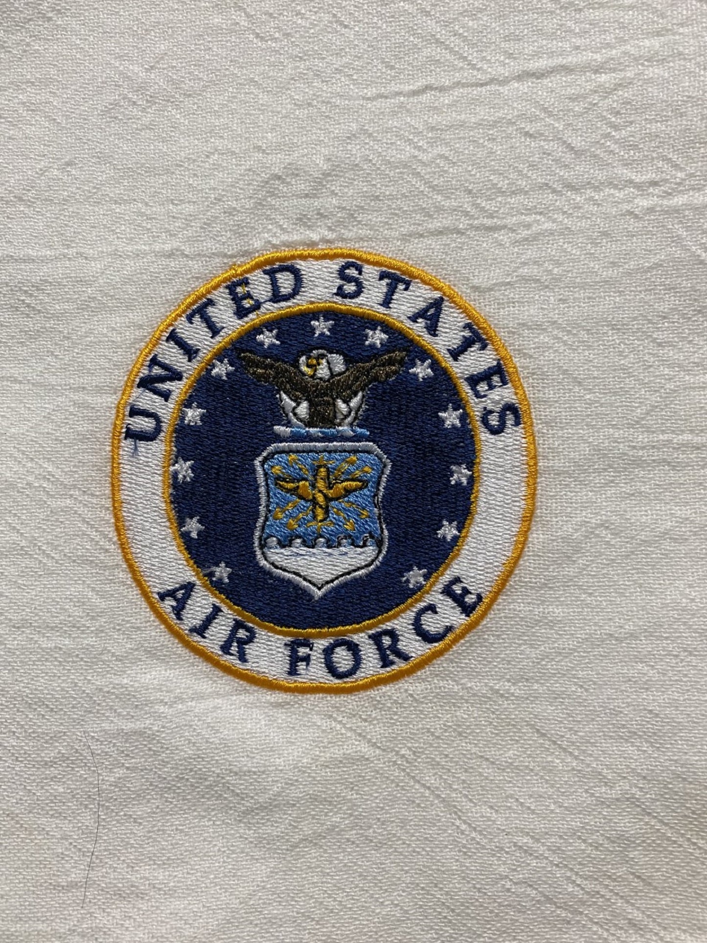 Celebrate service and strength with this beautifully crafted machine embroidered flour sack towel featuring the official United States Air Force logo. ✈️🪡🇺🇸 Whether used functionally or as a display piece, it’s the perfect addition to any patriotic home.